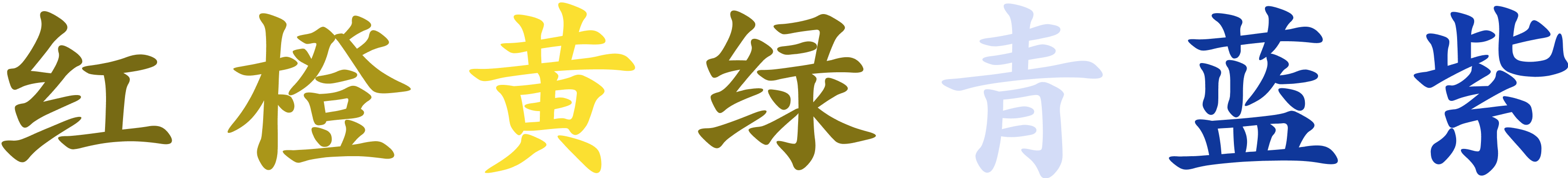 A simulation of the colors of a rainbow in the eyes of a red or green colorblind person.