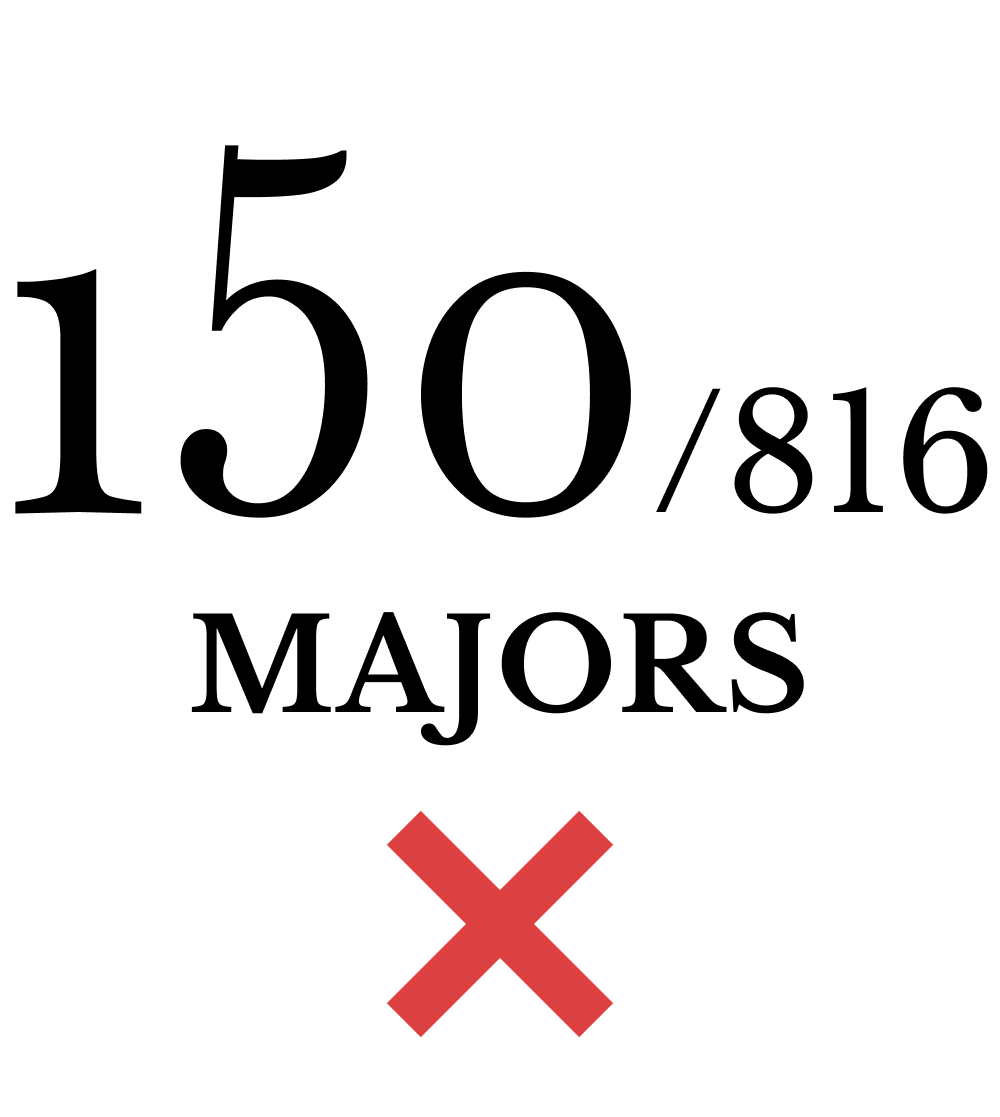 44 out of 93 categories have at least 1 major rejecting colorblind students.